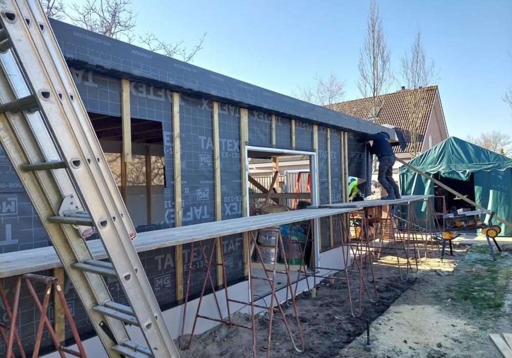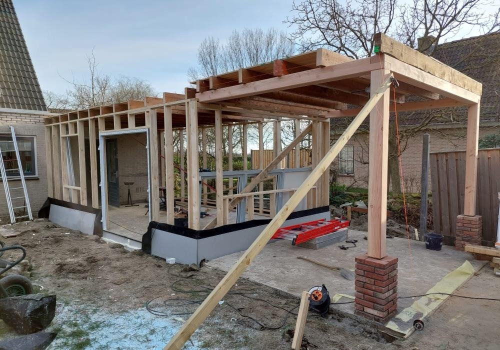 De aanbouw is opgebouwd met een duurzame houtskeletconstructie. Deze bouwmethode staat bekend om zijn goede isolerende eigenschappen en efficiënte bouwproces. Hierdoor ontstaat een comfortabele en energiezuinige uitbreiding van de woning.