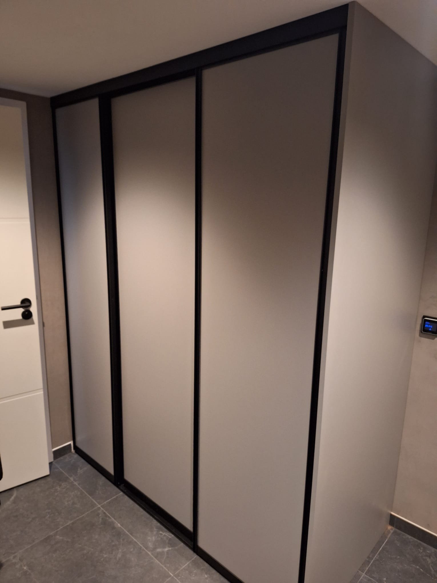 Ook de bijkeuken is volledig vernieuwd en voorzien van praktische oplossingen, waaronder een maatwerk schuifdeurkast voor extra opbergruimte.